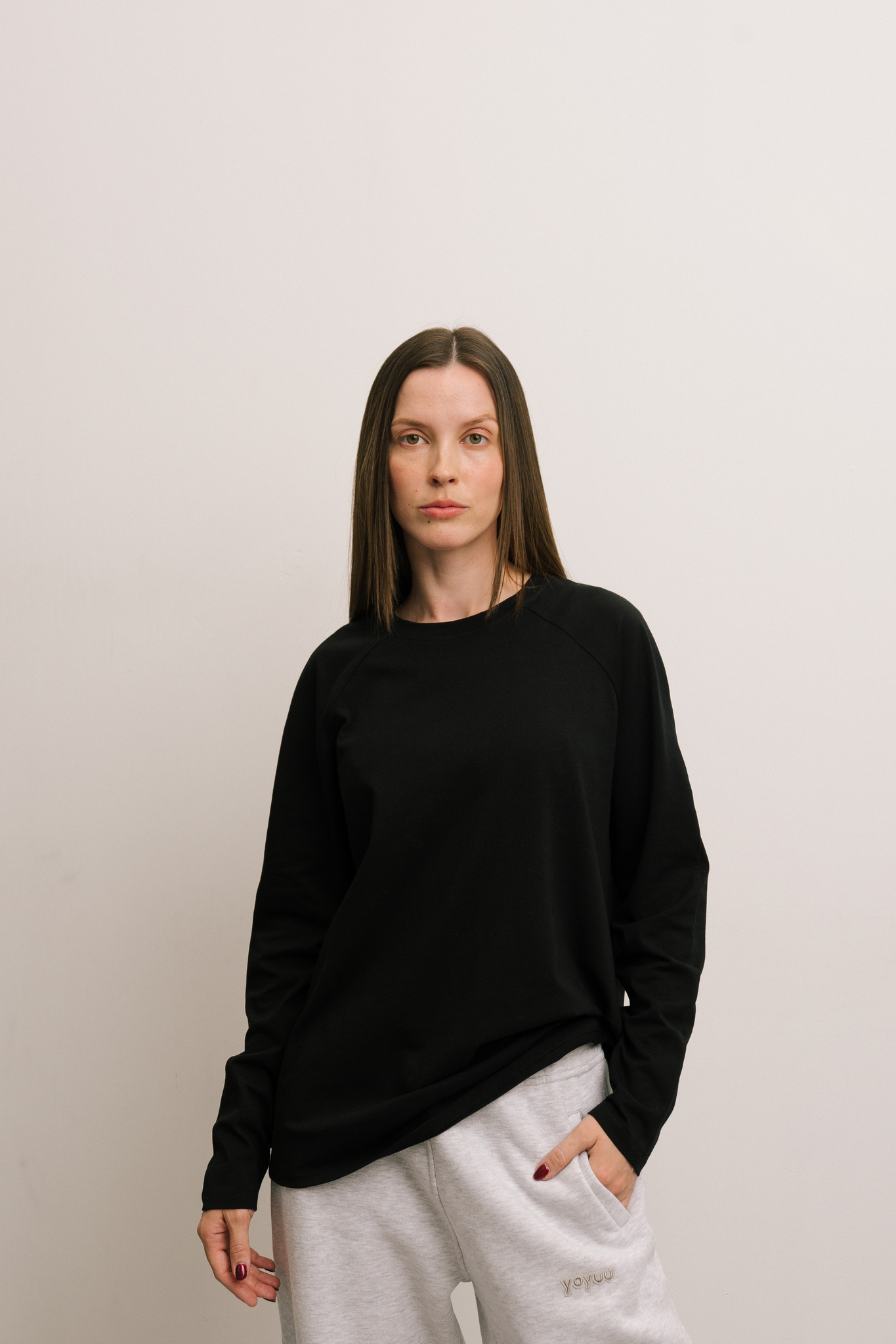 Базовый лонгслив из трикотажа прямого кроя с рукавами реглан