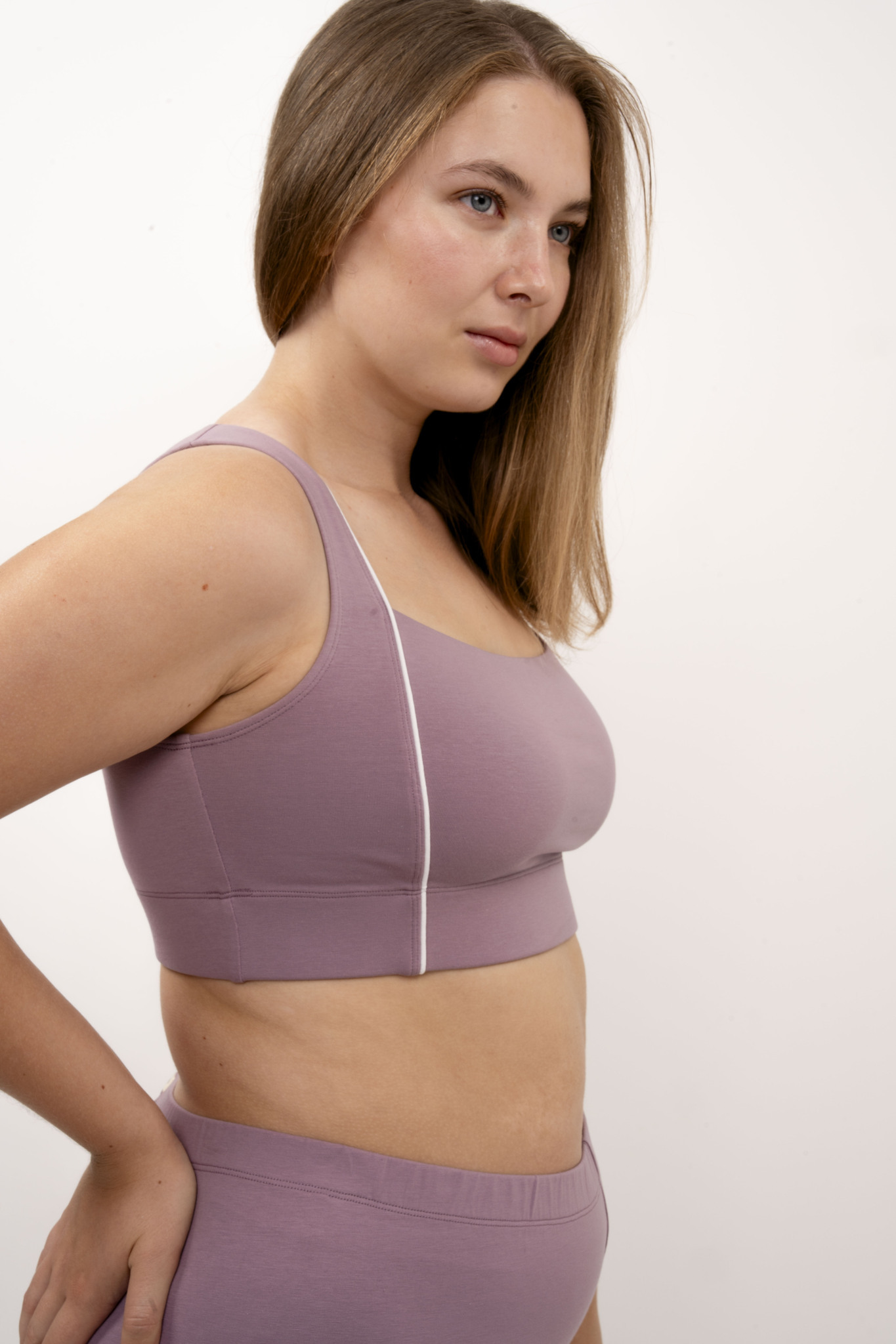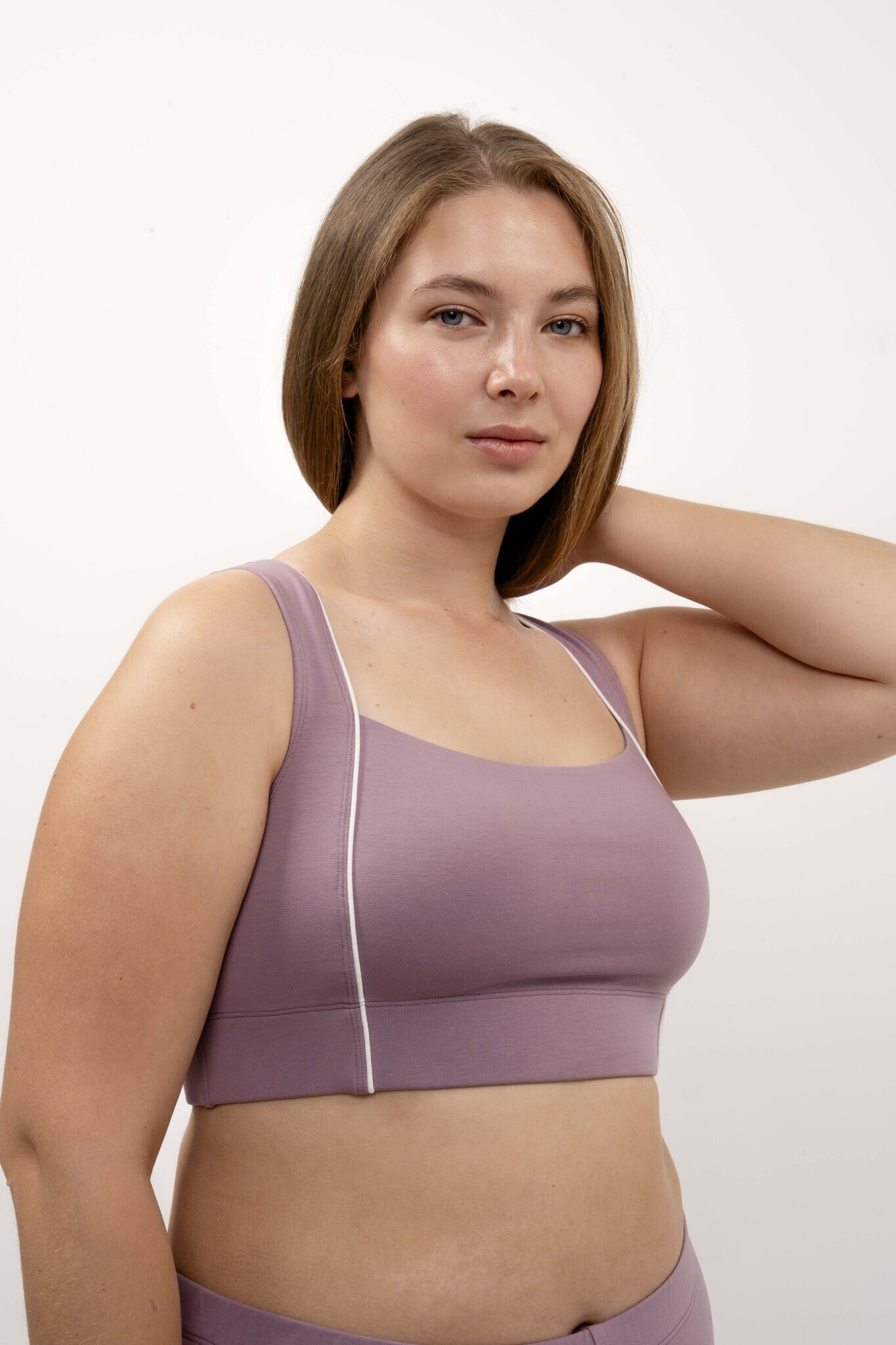 Бралетт на широкой резинке с закрытой спиной, вместительной чашкой и контрасной деталью