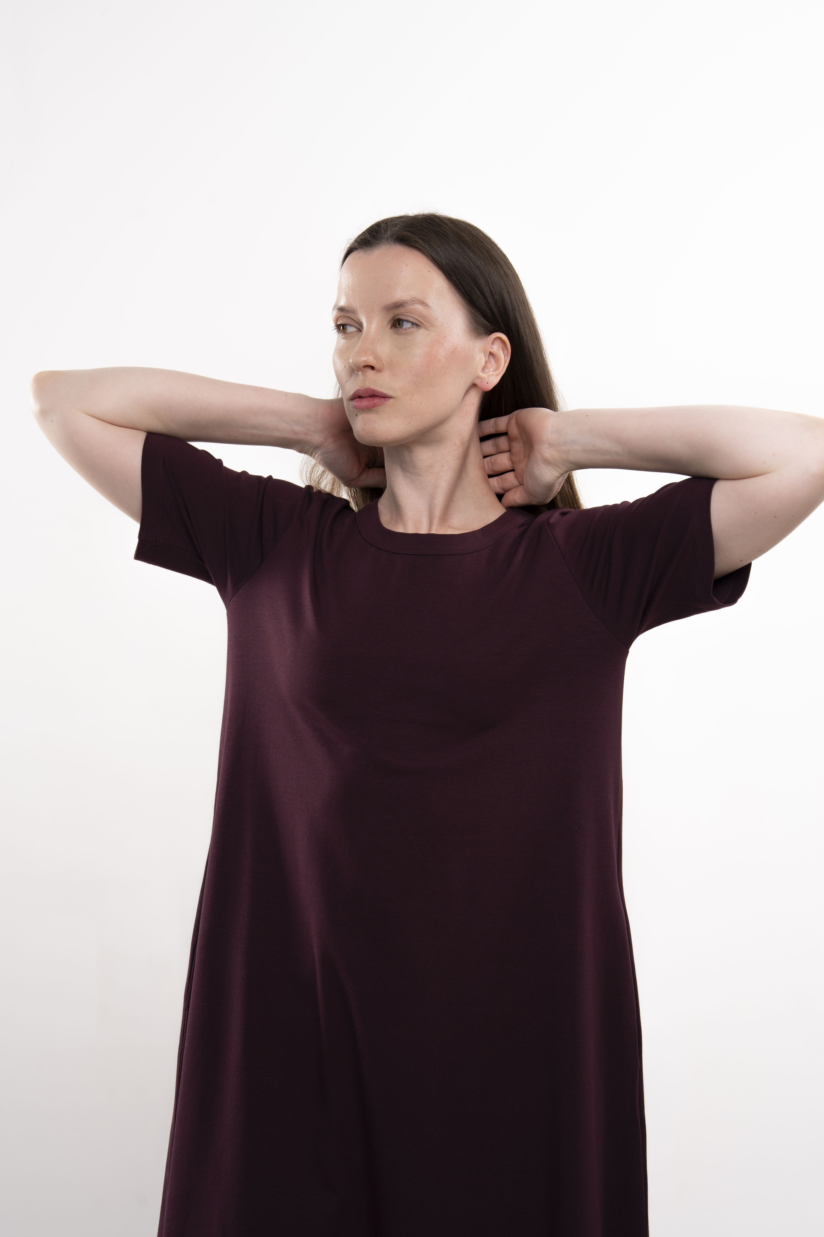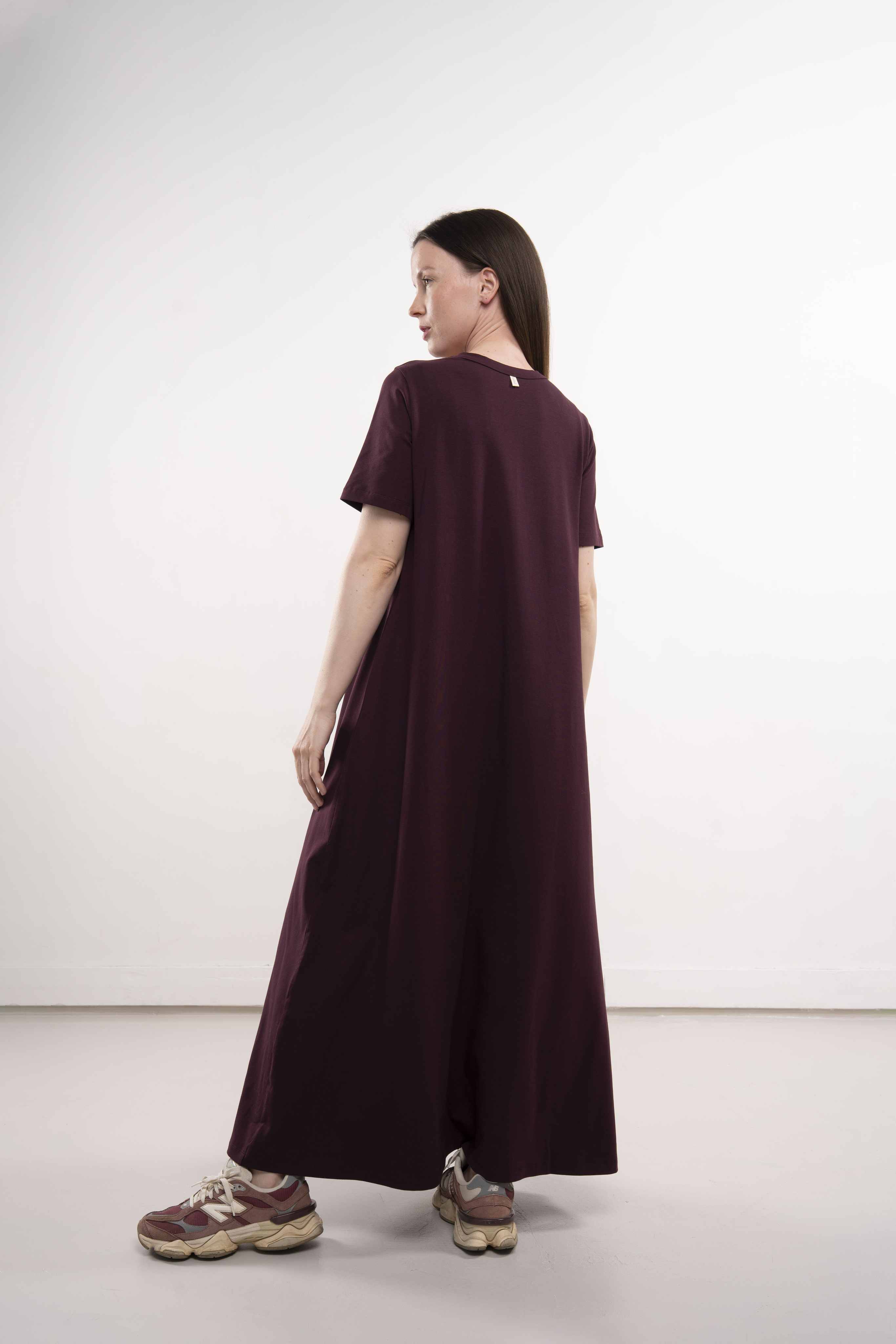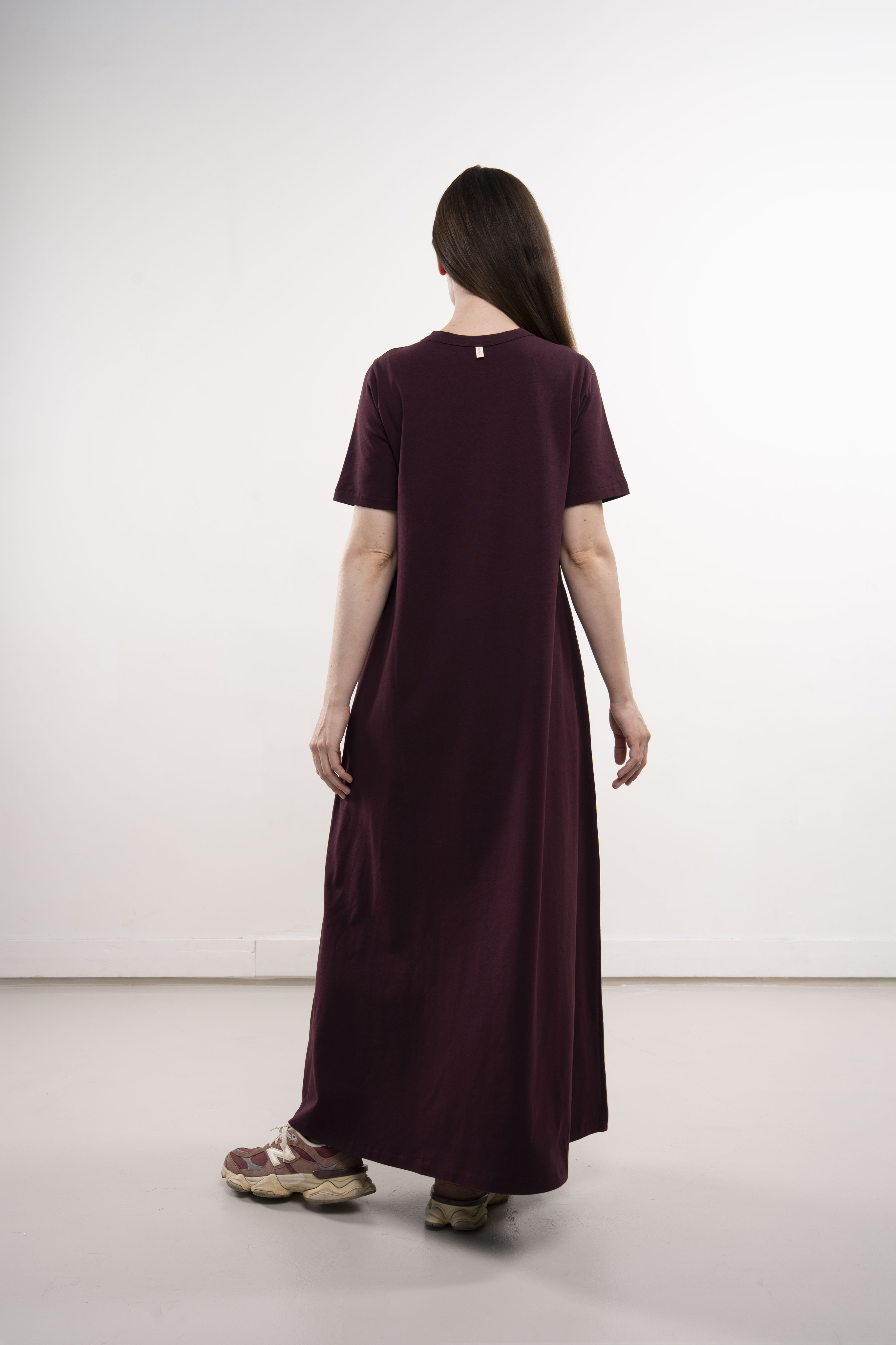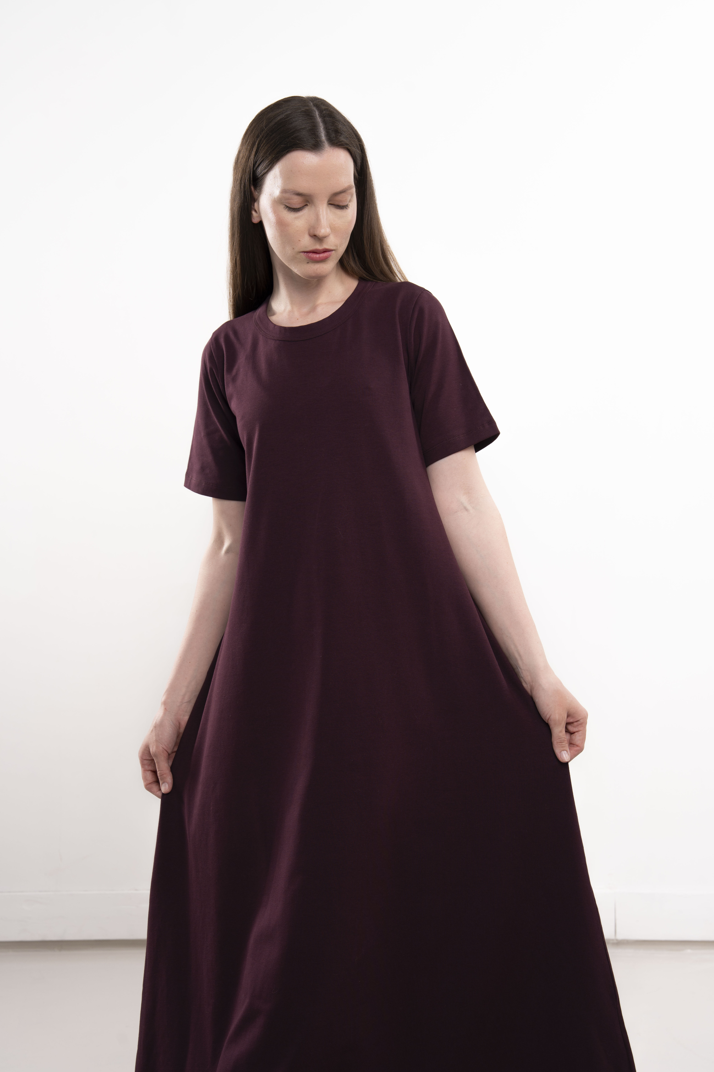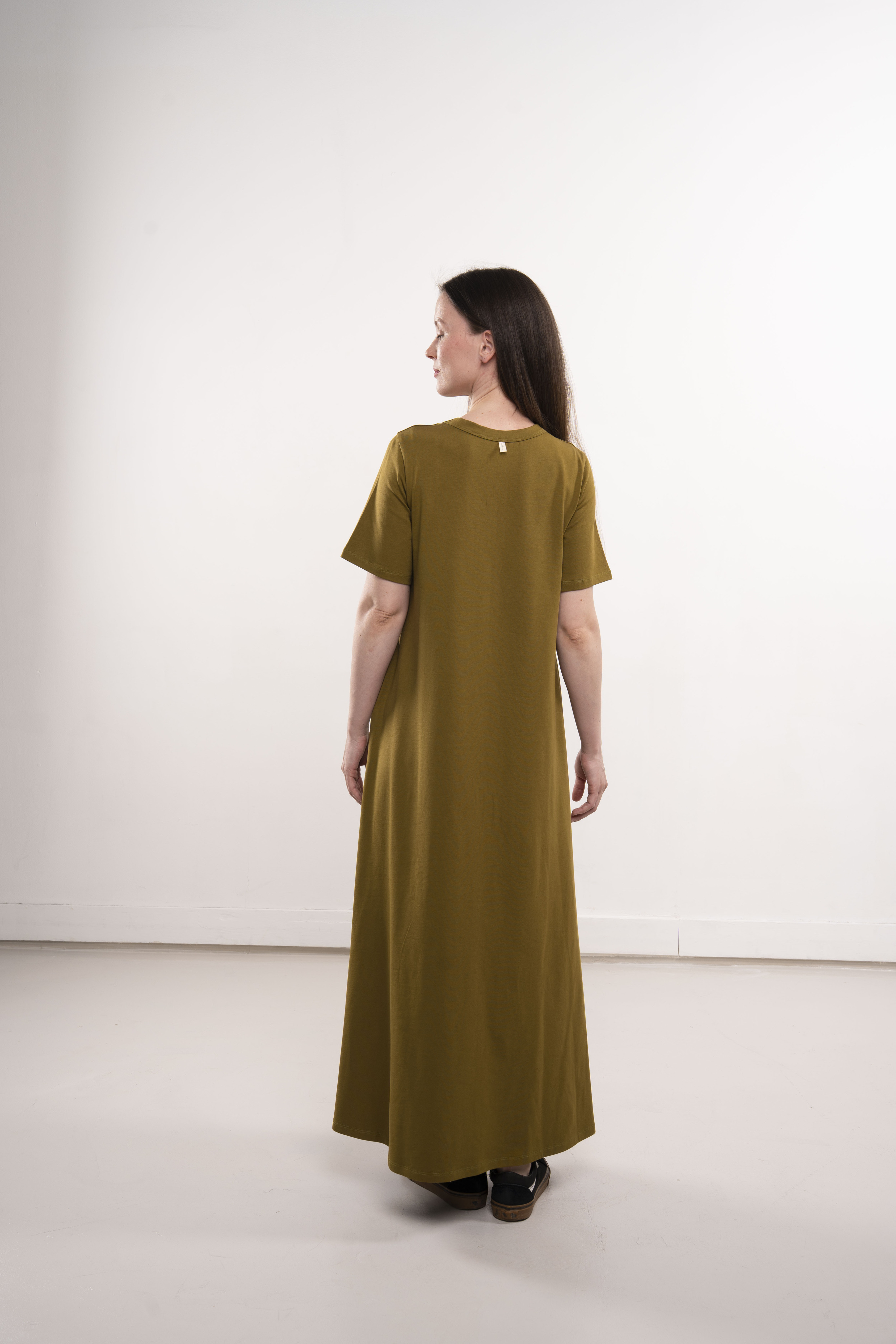 Платье с короткими рукавами и карманами из хлопкового трикотажа пенье.
