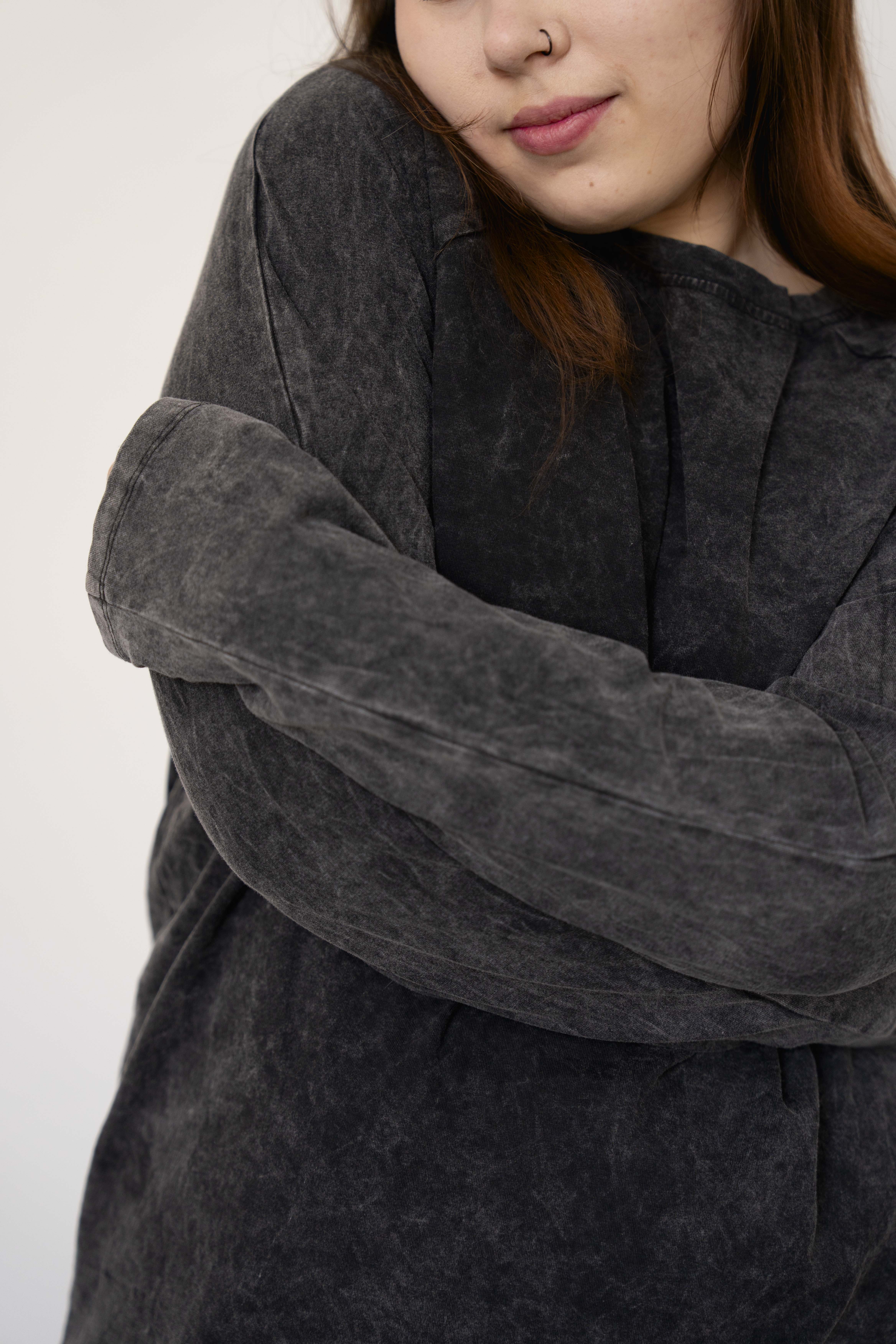 Каждое изделие прошло варку вручную. Оттенки и разводы ткани совершенно непредсказуемые. В варёном хлопковом трикотаже, каждое изделие уникально.