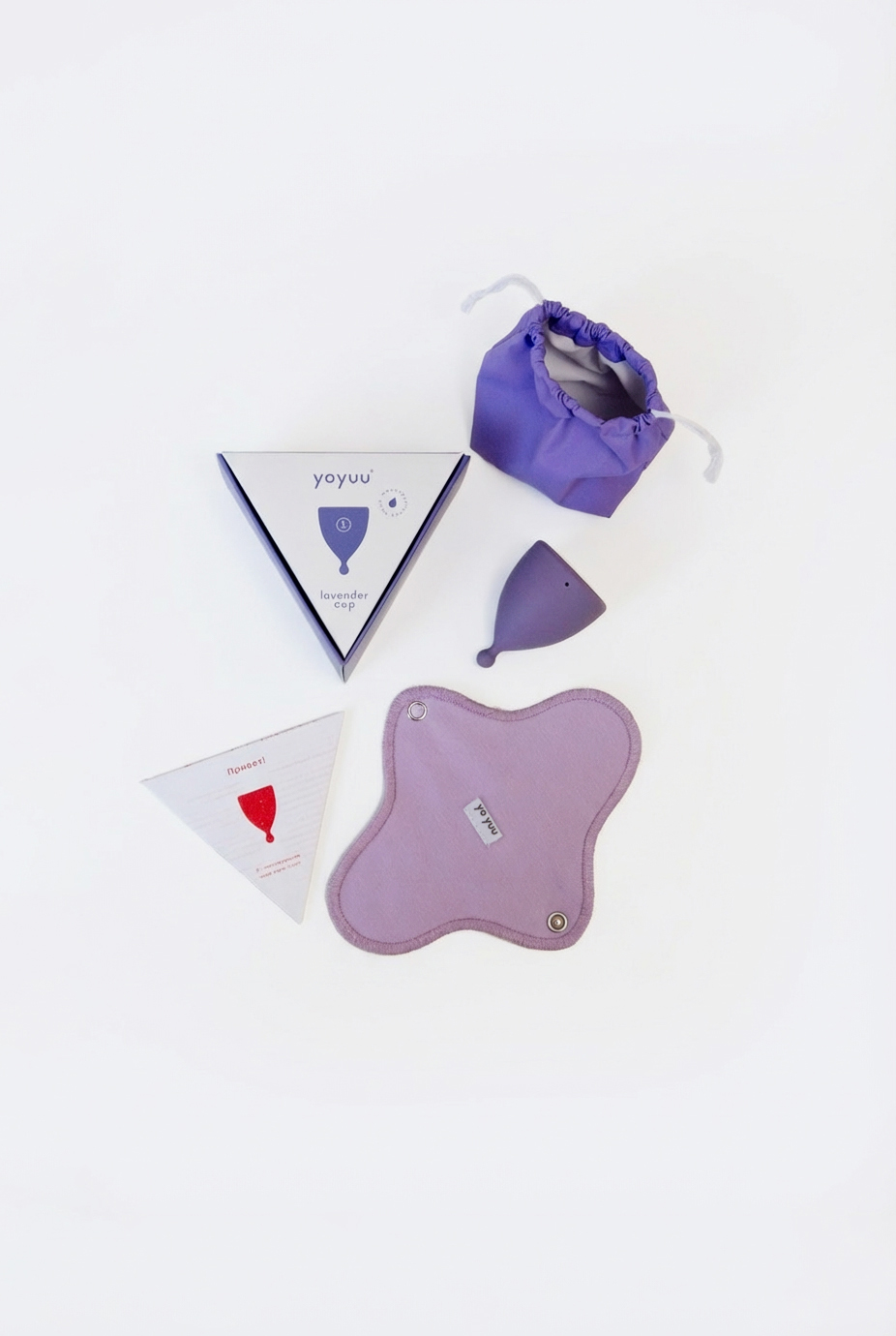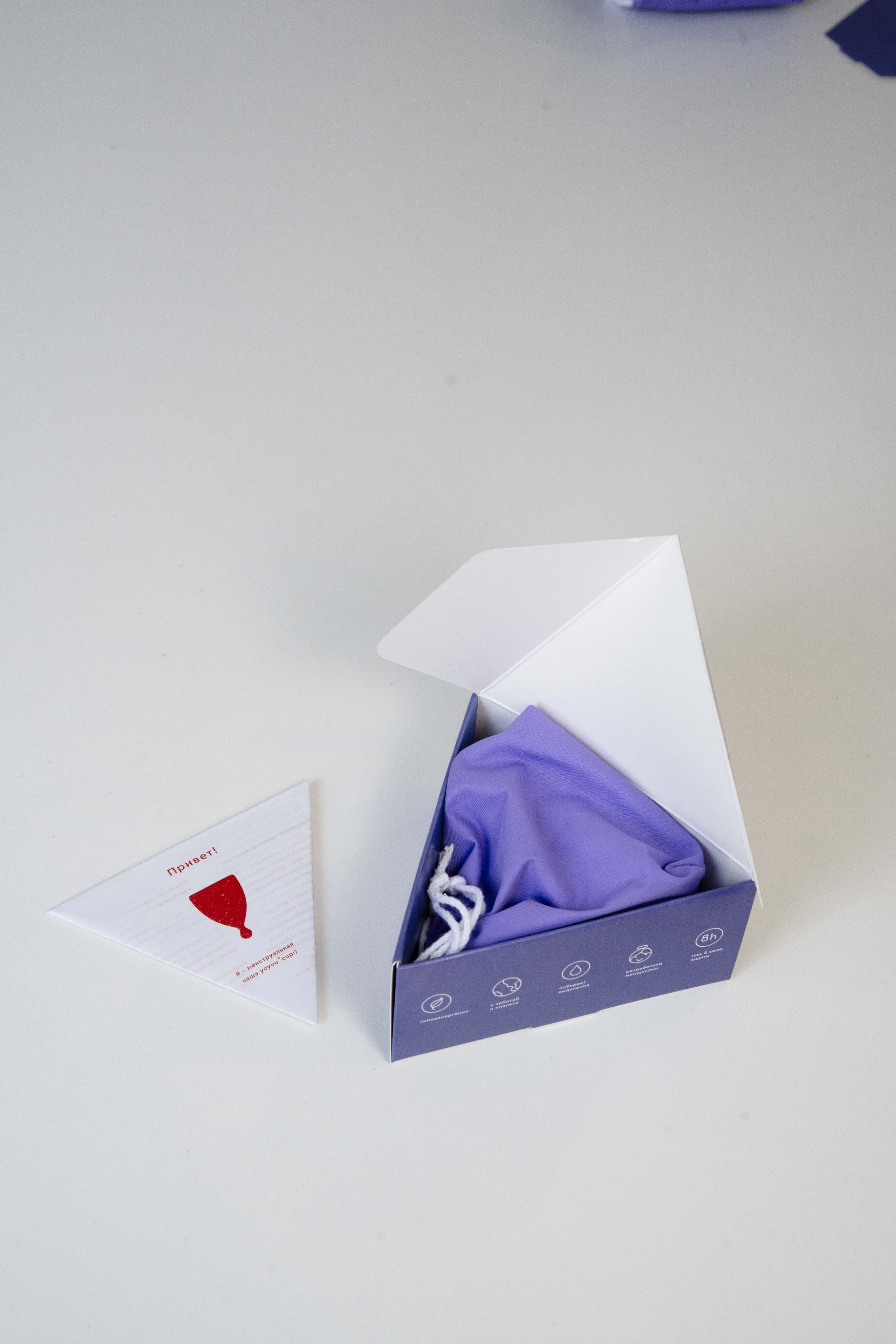 Менструальная чаша из мягкого 100% медицинского силикона. Он безвреден для здоровья и не вызывает аллергии.
