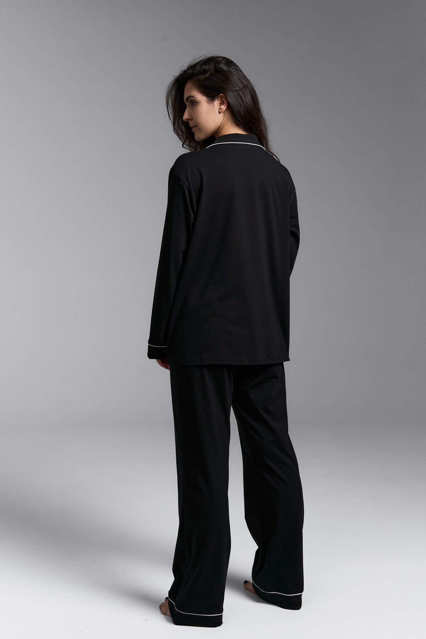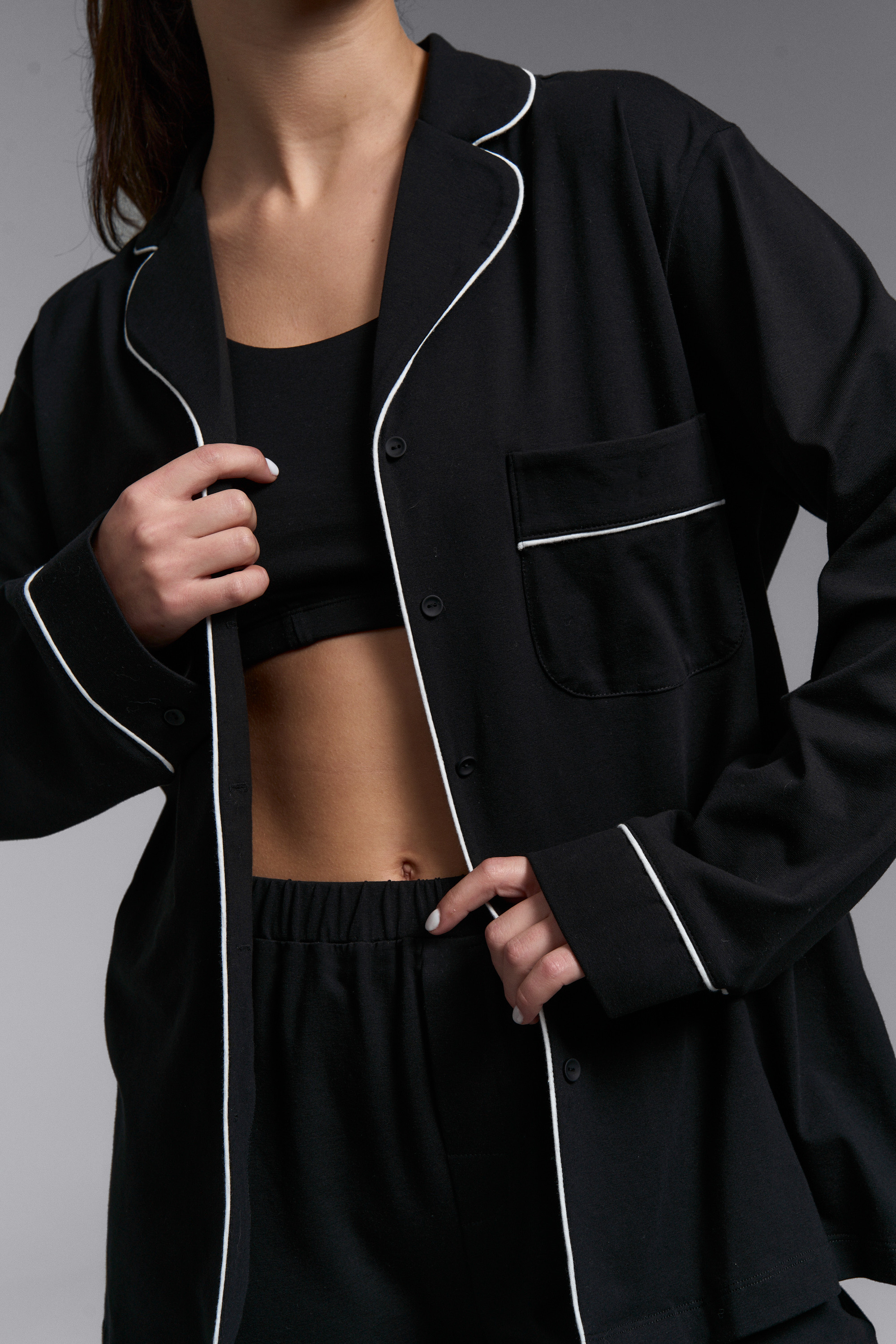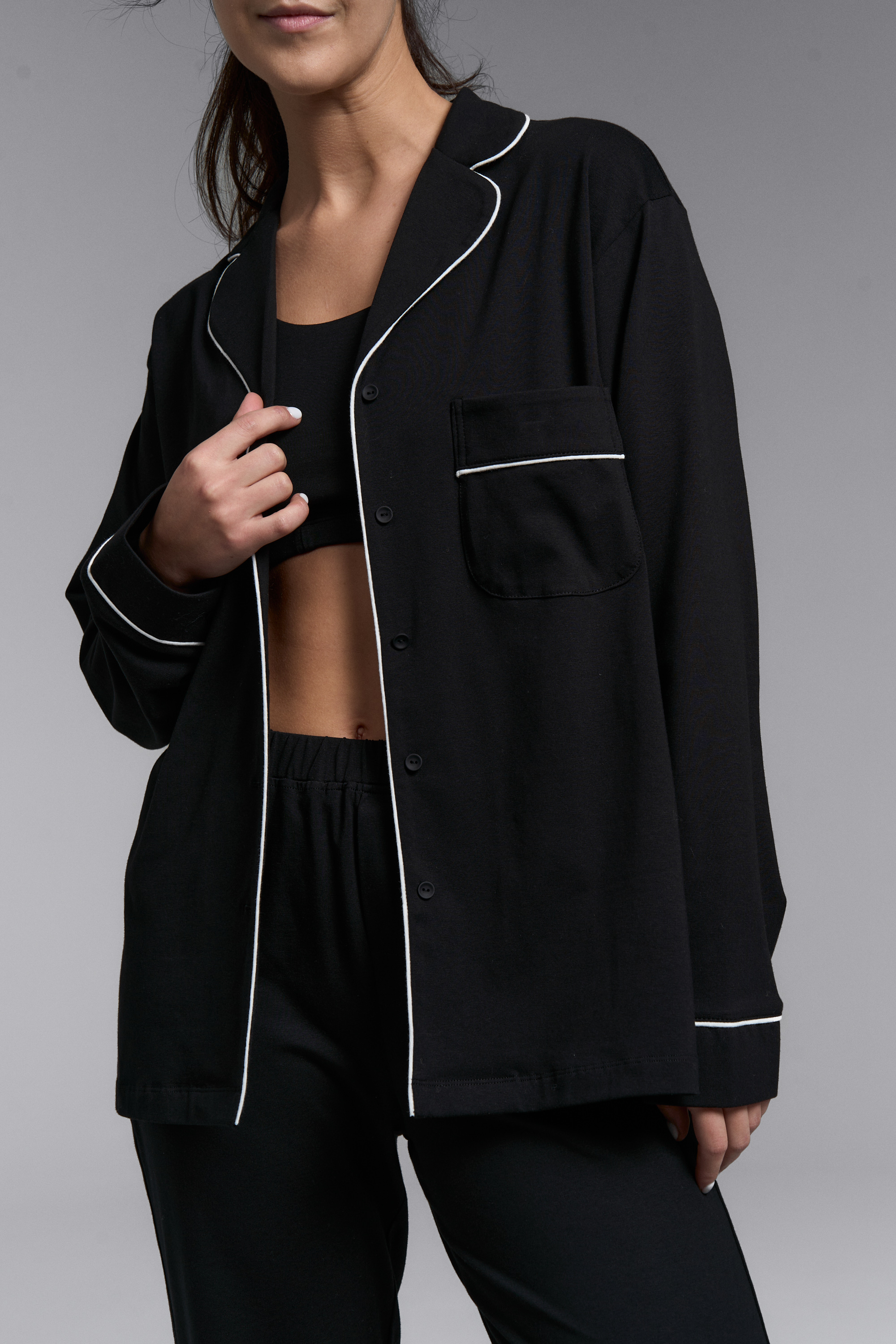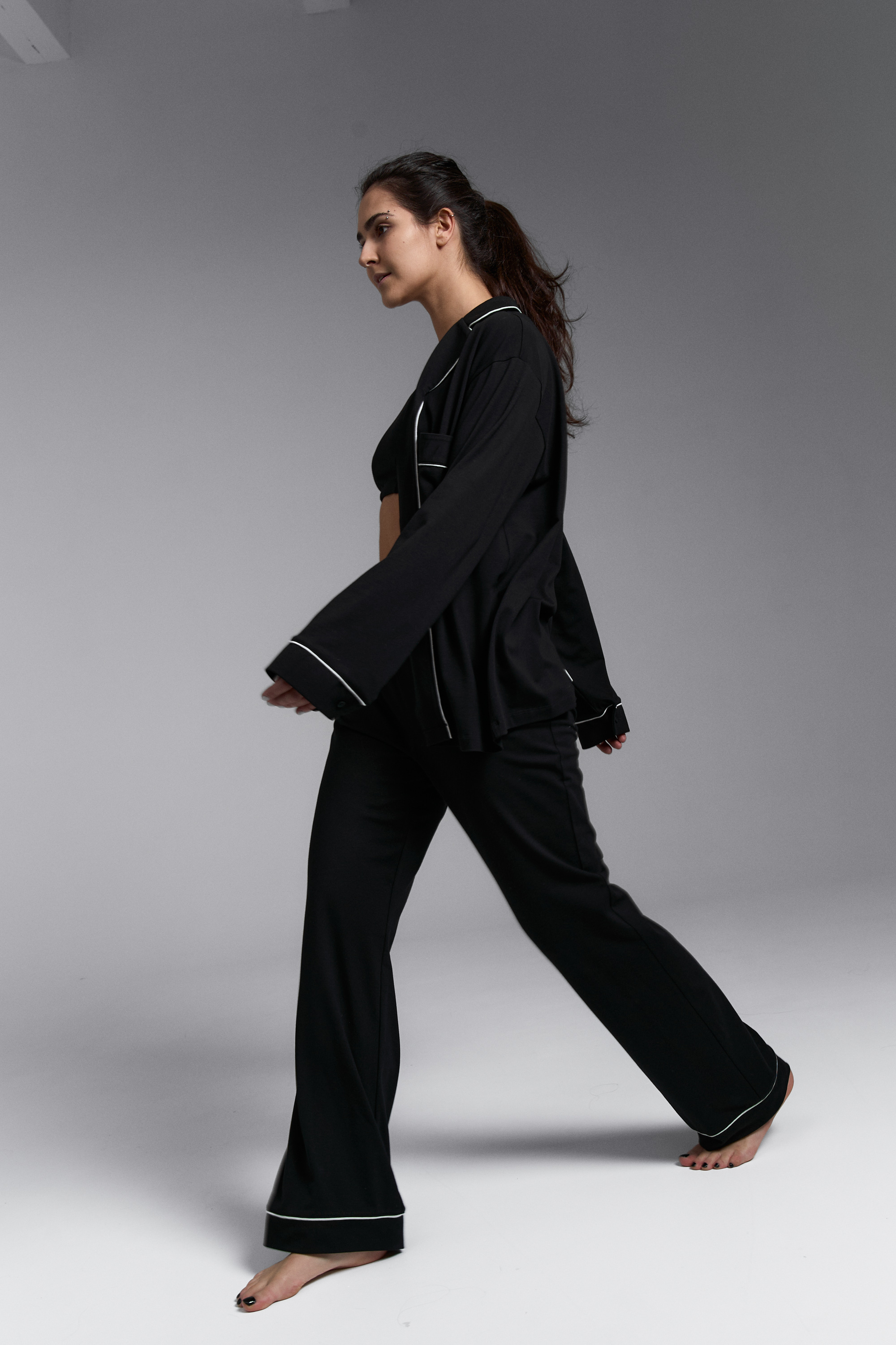 Классическая пижама с брюками клеш в черном цвете с контрастными кантами