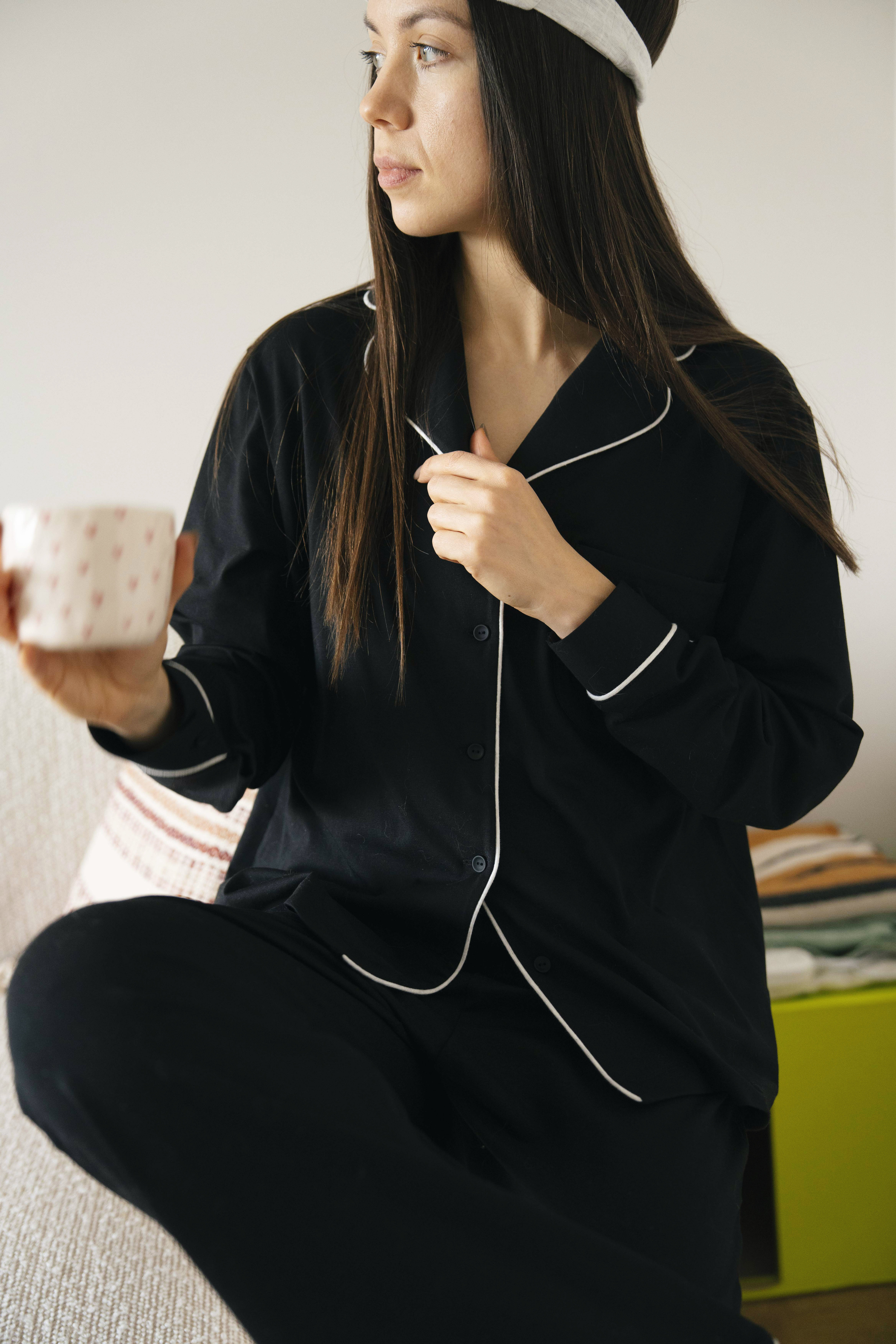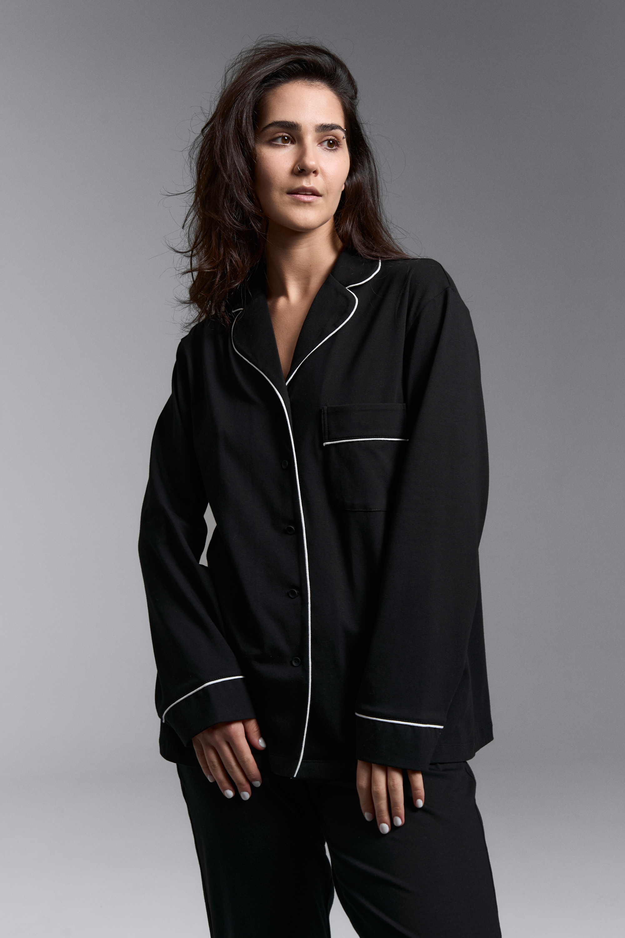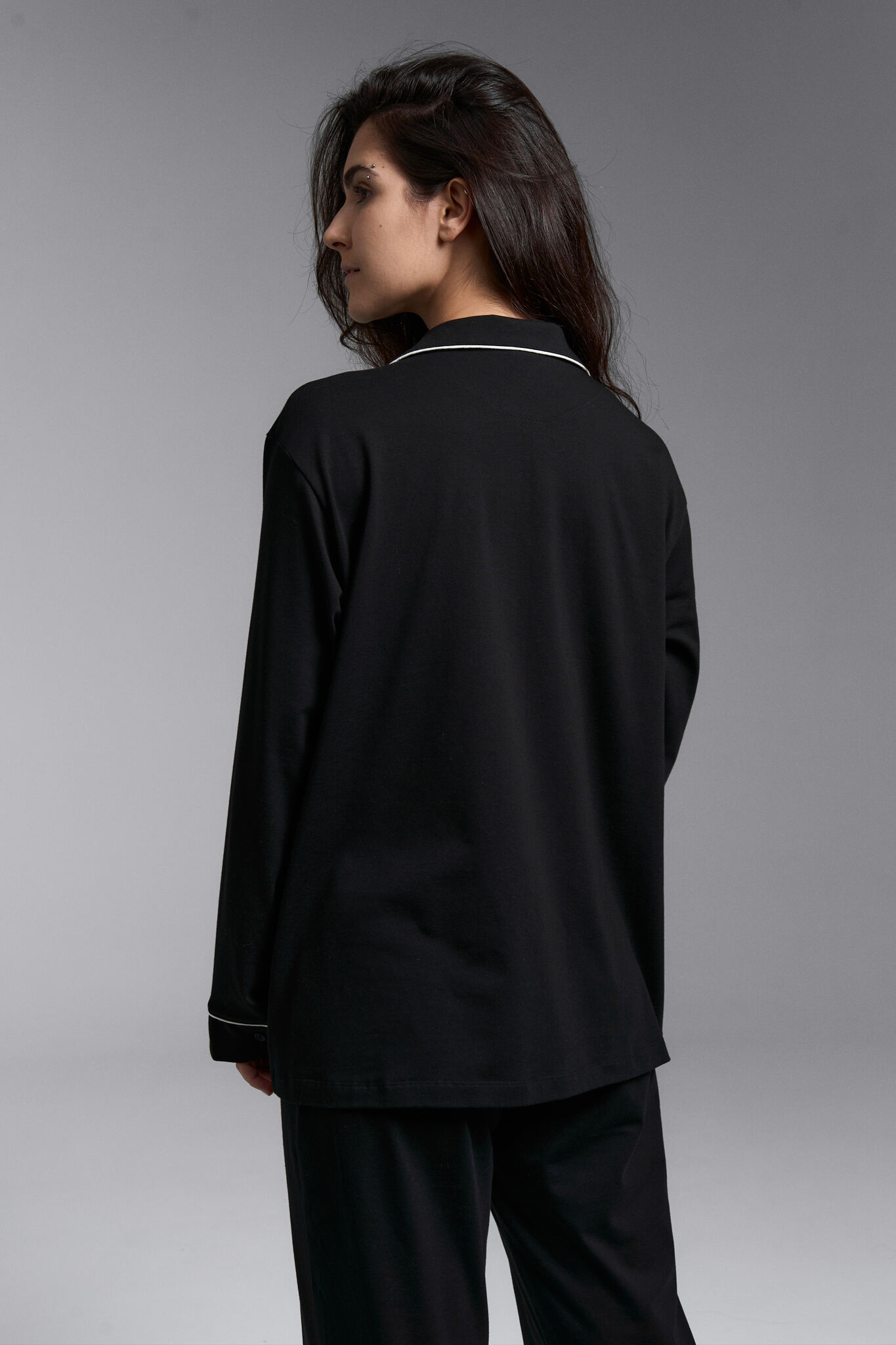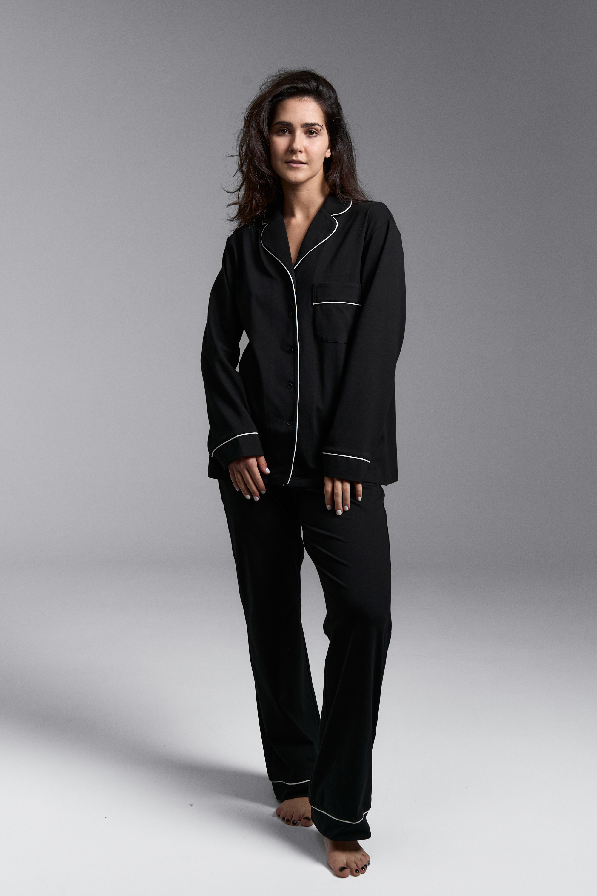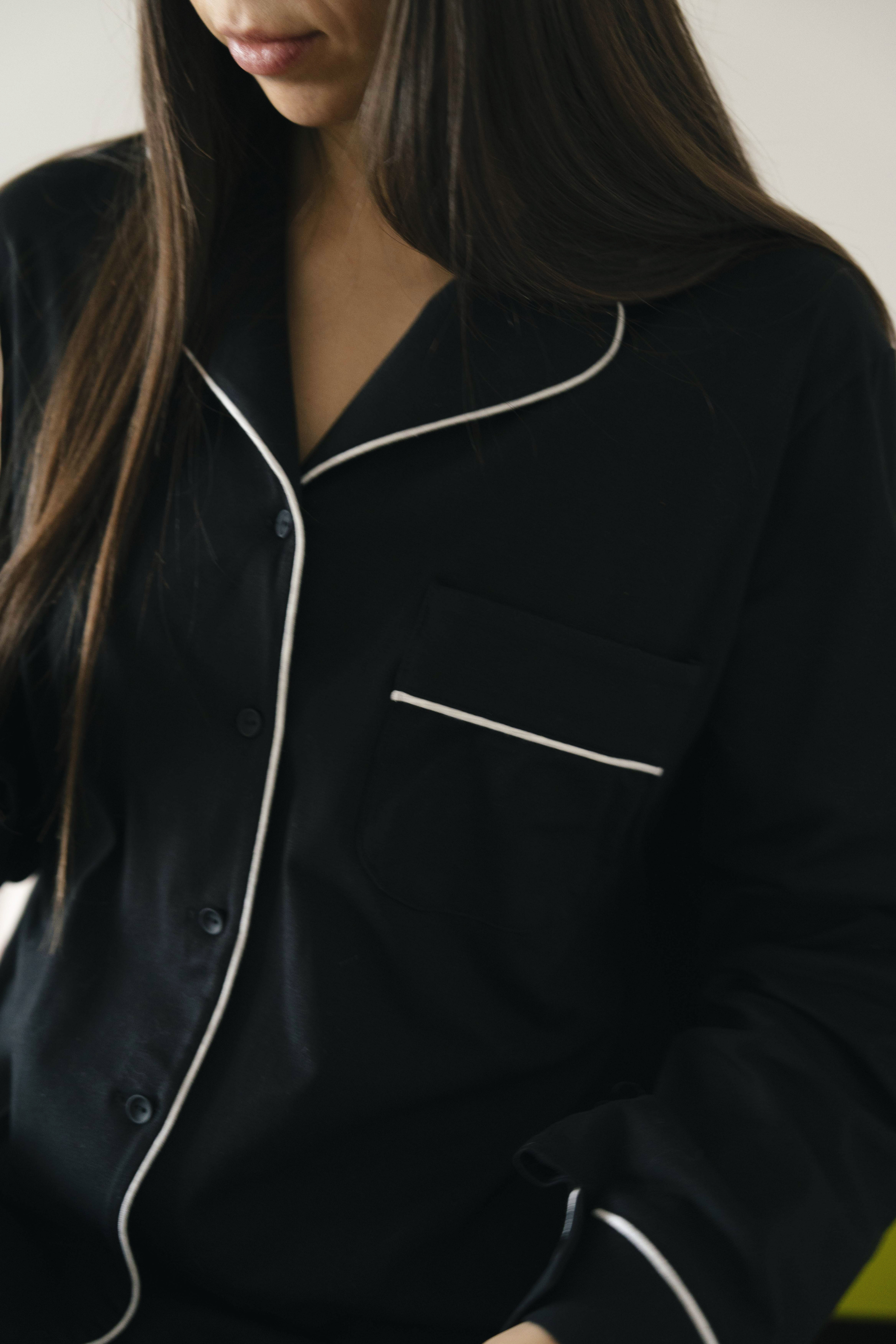 Классическая пижама с брюками клеш в черном цвете с контрастными кантами