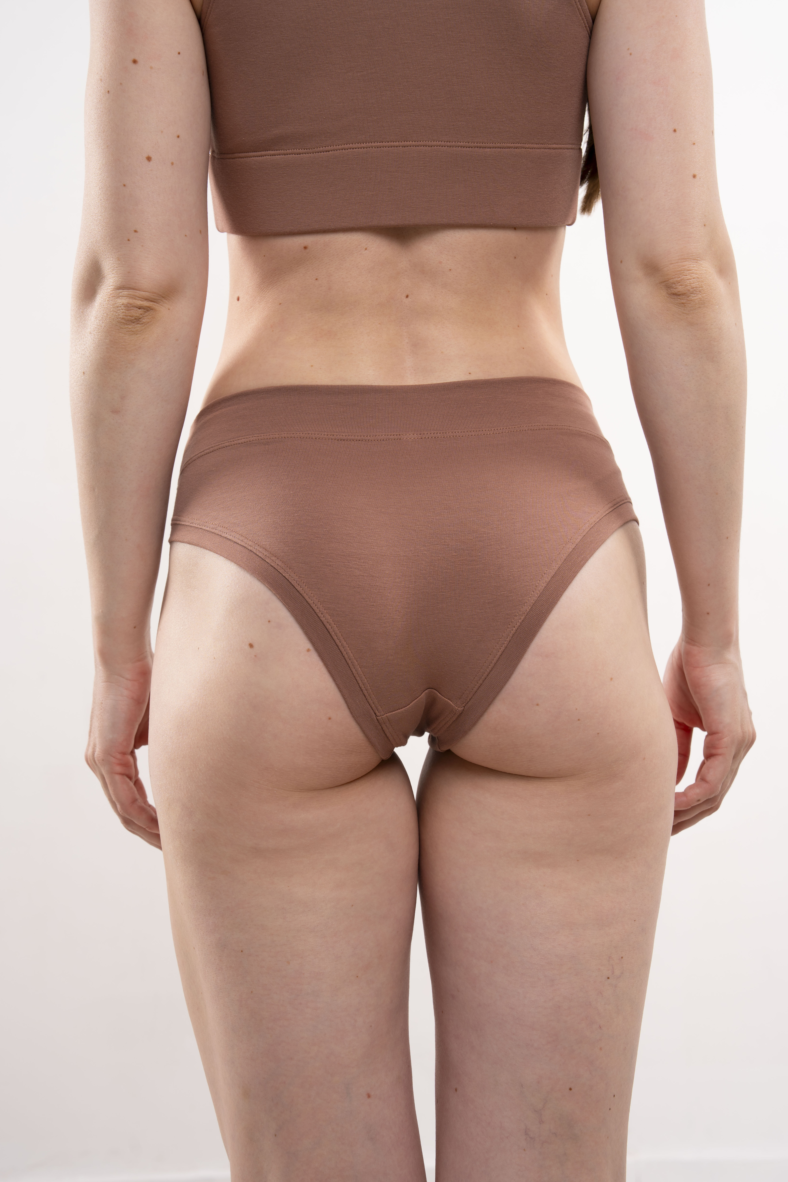 Трусы с трикотажными окантовками на средней посадке из хлопкового трикотажа «пенье». Трусы изготовлены полностью без резинок внутри.