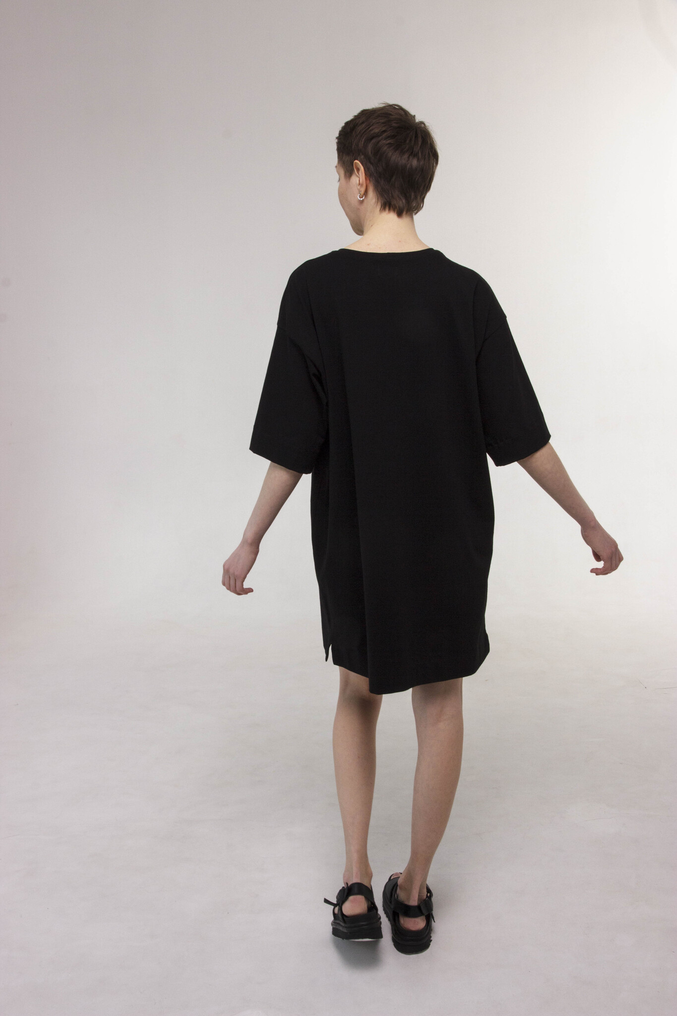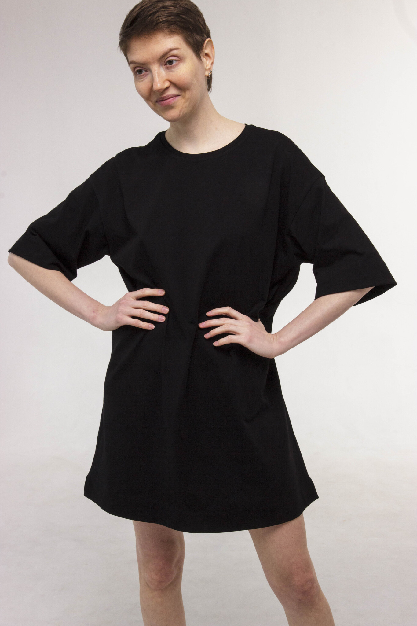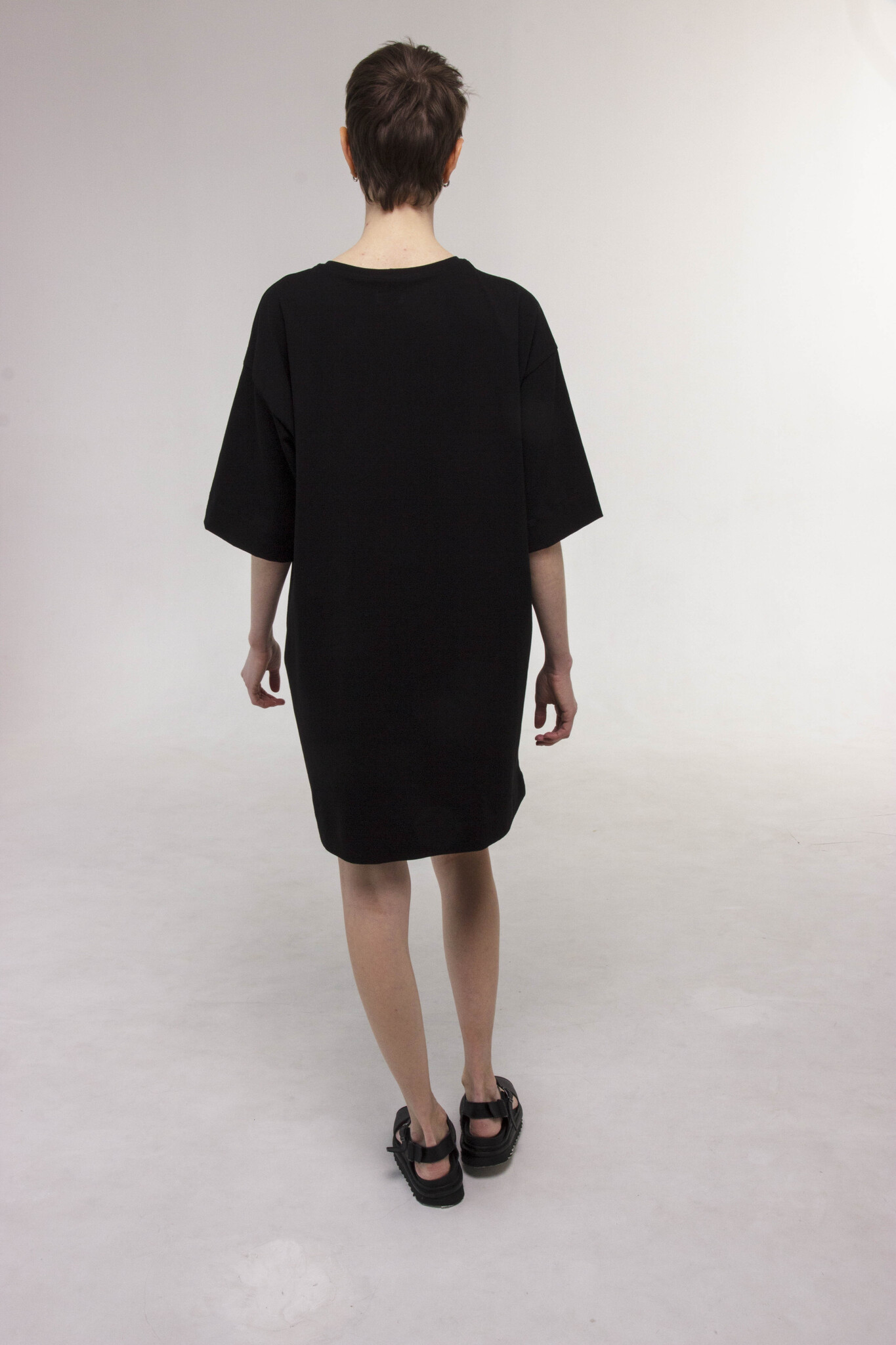Укороченное свободное платье-футболка с рукавами до локтя