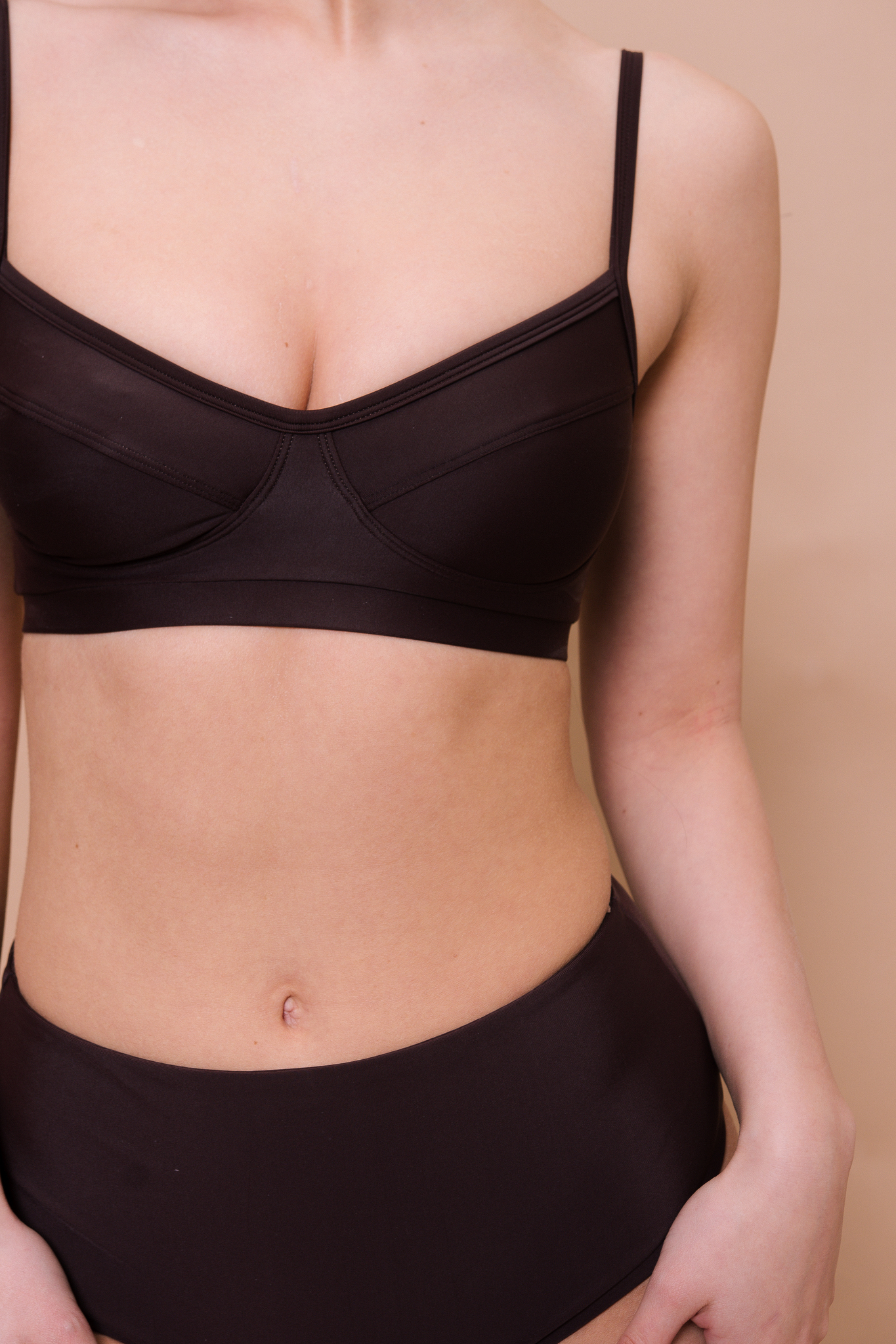 Верх купальника со сложноскроенной чашкой, бретелями на завязках и слитной спинкой