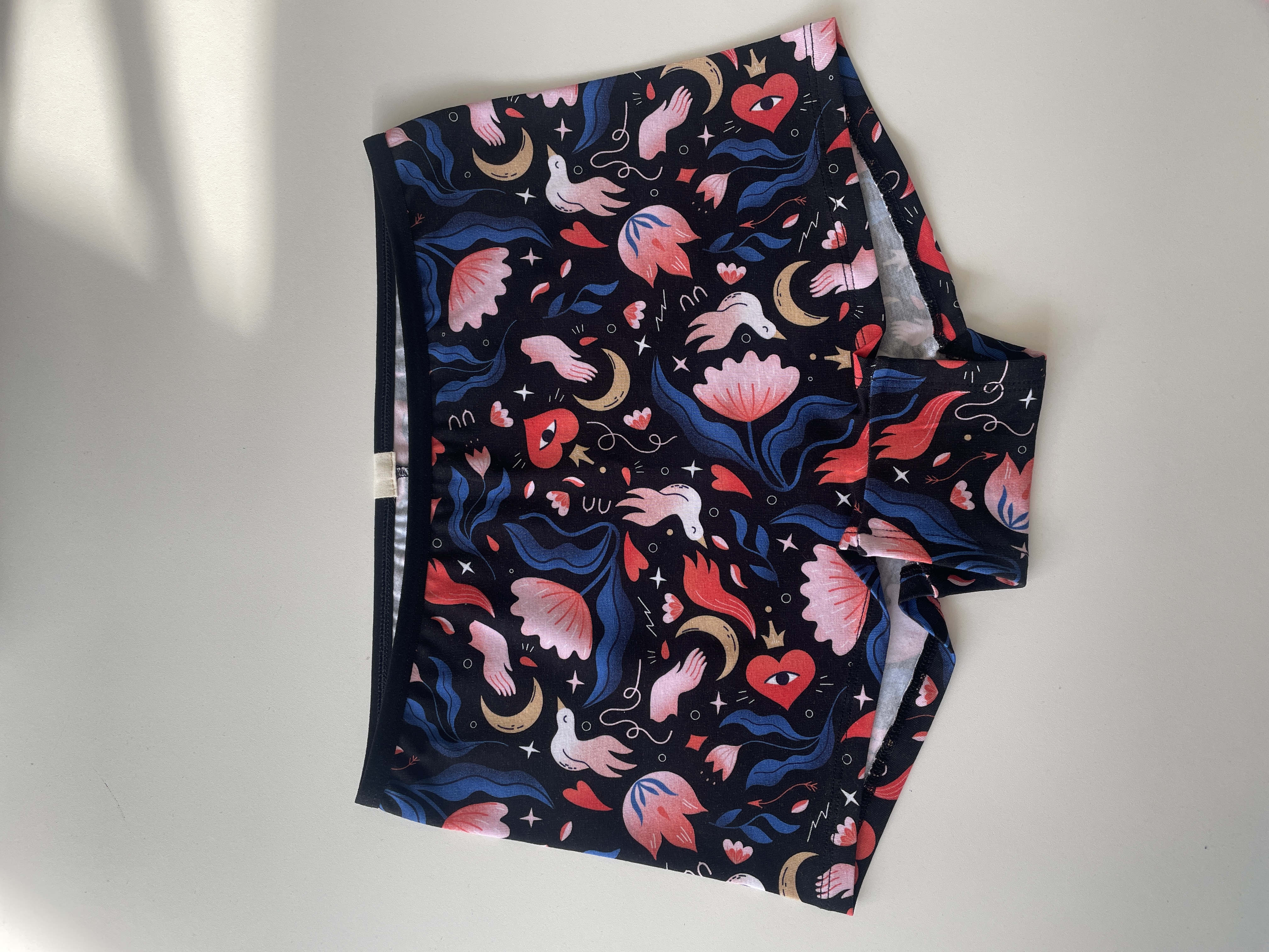 Высокие трусы в форме шорт с эластичной окантовкой по верху, мягкая посадка, яркий живой принт для хорошего настроения и базового комфорта. Обработка текстурированными нитями изнутри, чтобы ничего не натирало.
